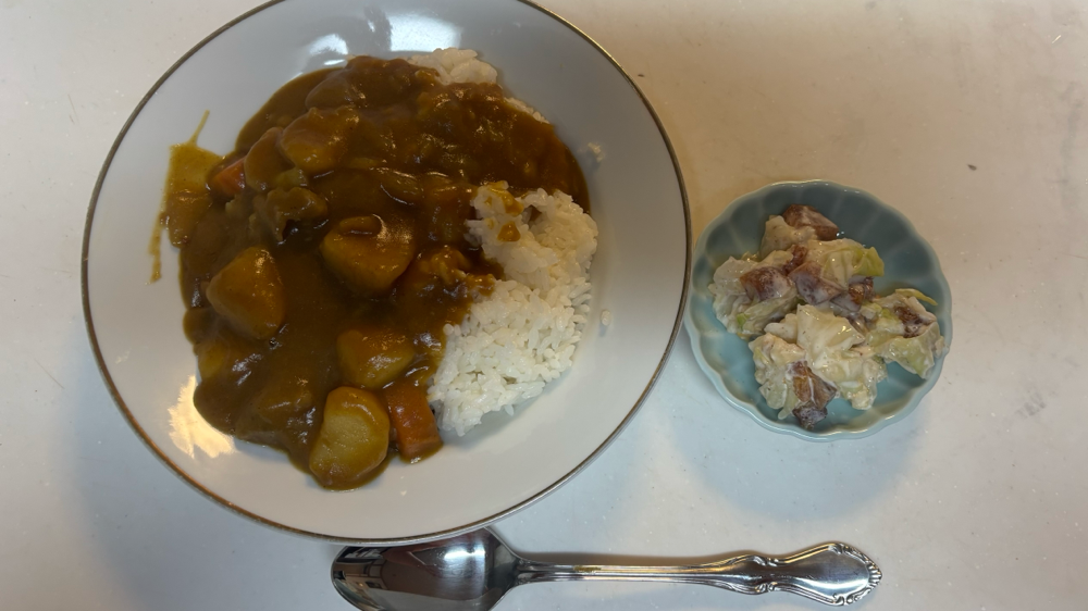 お肉の代わりに蒟蒻を入れて、シンプルなカレーでしたが、みなさん喜んで召し上がってくださいました♪